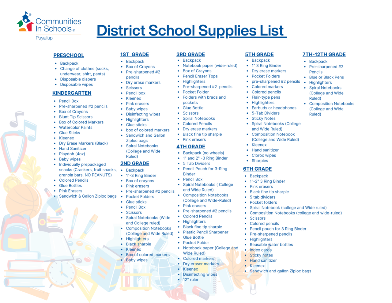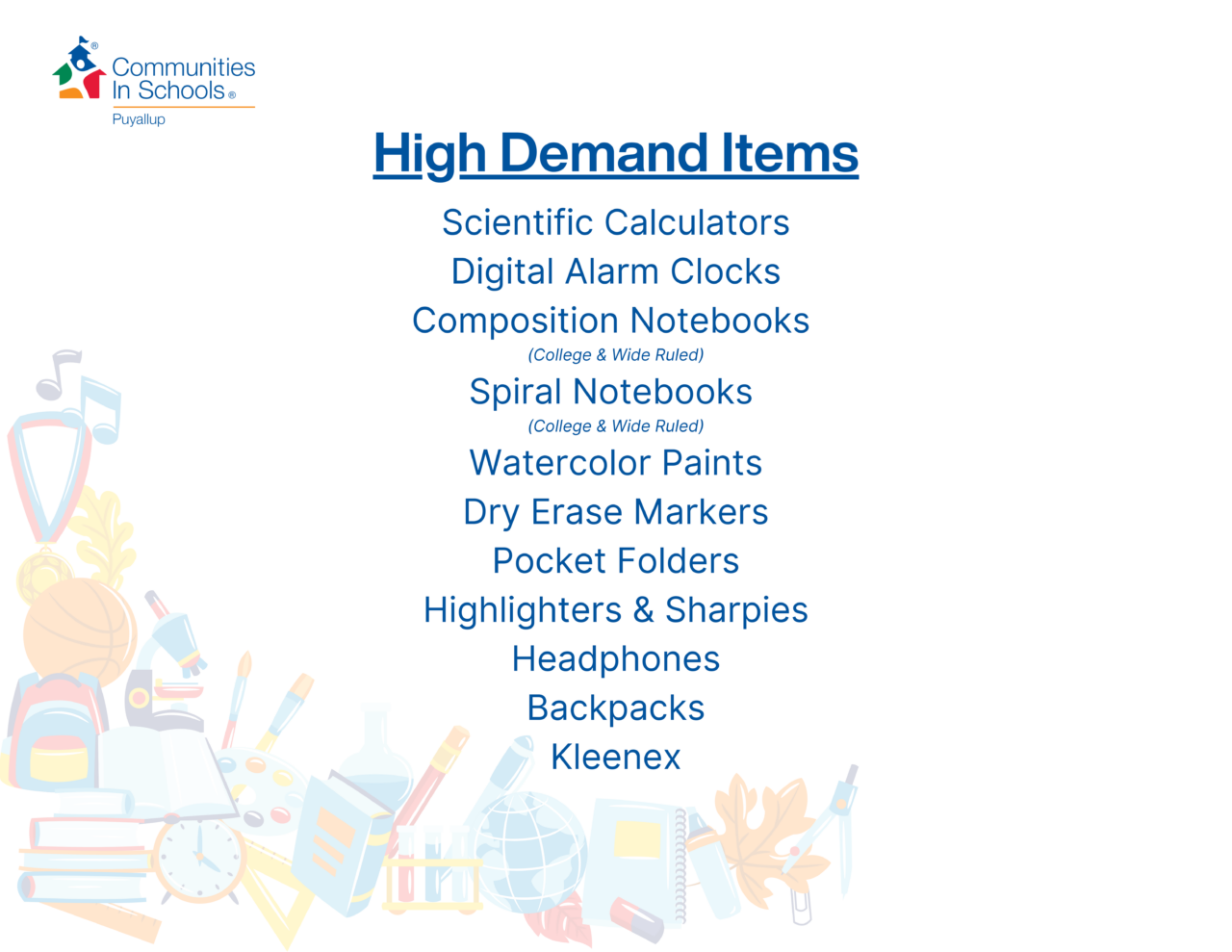 *Lists featuring high-demand items and general school supplies live at the bottom of this page