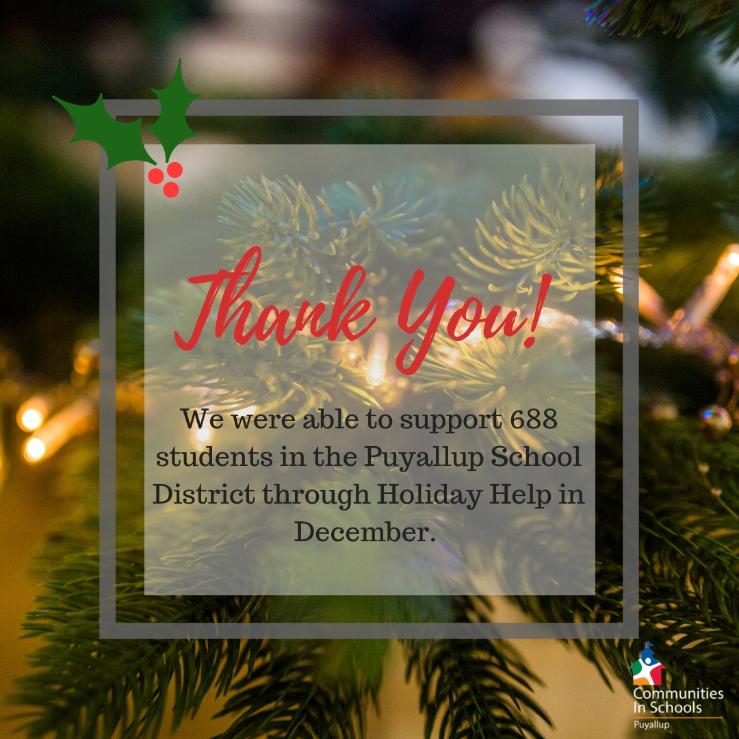 Thank you to all the countless individuals, organizations, and business that supported students and their families during this holiday season. The generous donations of clothing, food, and gifts made all the difference to families in need.