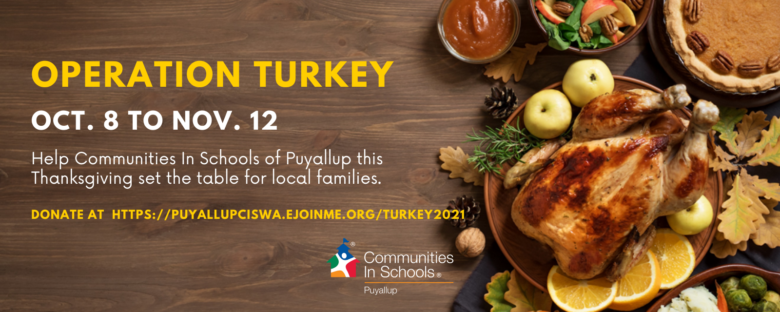 We are thrilled to kick off this fundraising effort once again. Help us set the table for local families this Thanksgiving and donate today at https://puyallupciswa.ejoinme.org/Turkey2021.